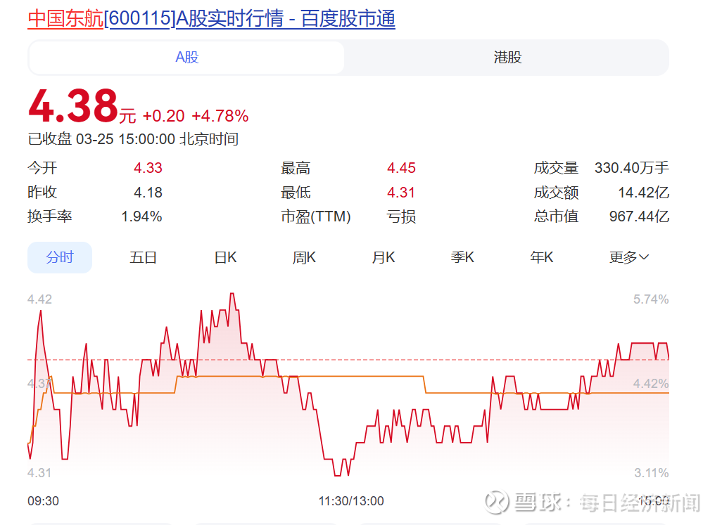 3月25日,东航AH股双双大涨超4%。