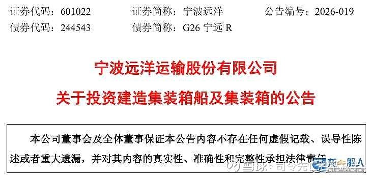 2026年3月31日 14:48上海3月31日,宁波远洋运输股份有限公司发布《关于投资建造集装箱船及集装箱的公告》,将斥资不超过17亿元订购至多6艘支线集装箱船。
