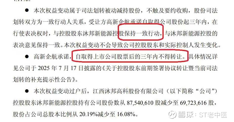 今天沐邦划转1781万股给安徽国资,价格3.64亿,相当于每股20.43元,三年内不得转让。