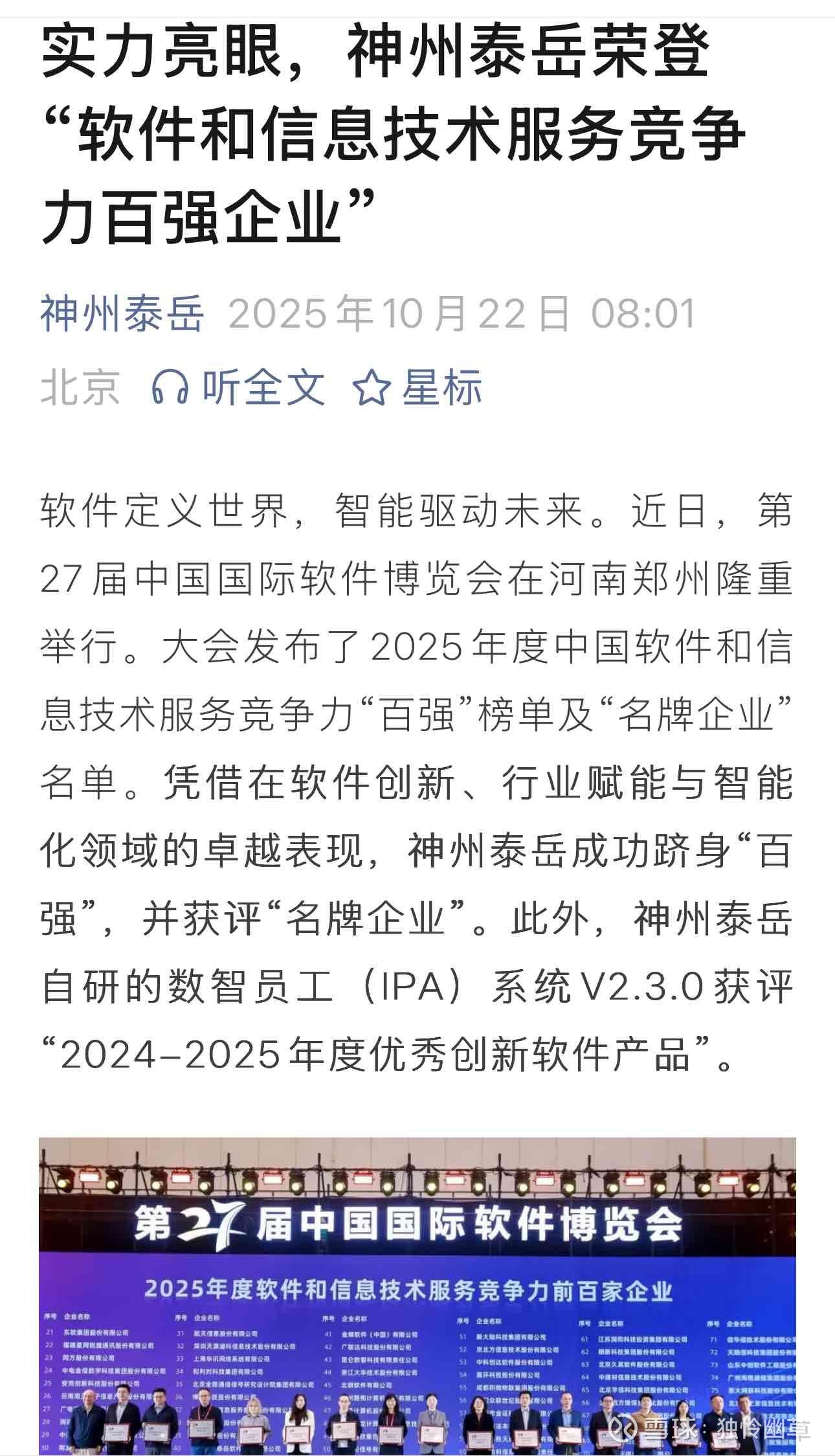 进入“软件和信息技术服务竞争力百强”前50名。真是好消息不断啊!