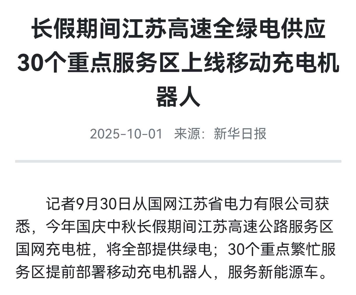 今年国庆长假,多个地区部署移动充电机器人,比如下面新闻里面的江苏高速。
