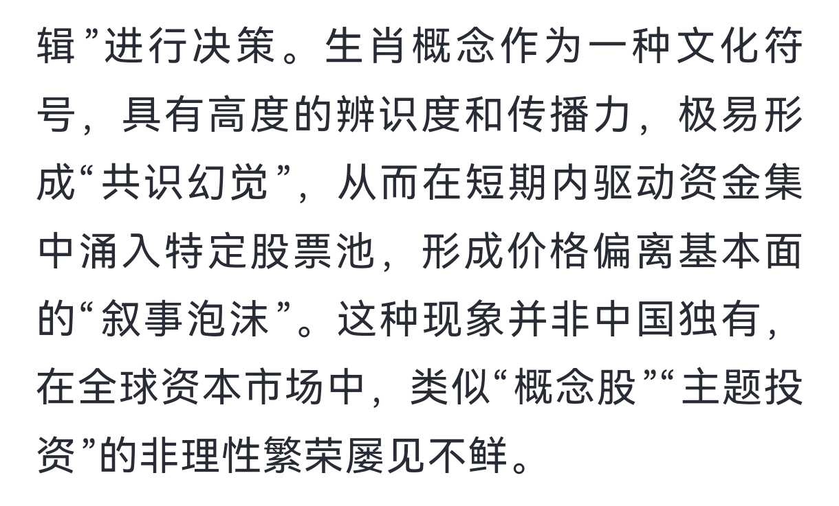 接着,引用投顾人士观点,点出生肖玄学炒作的本质原因。