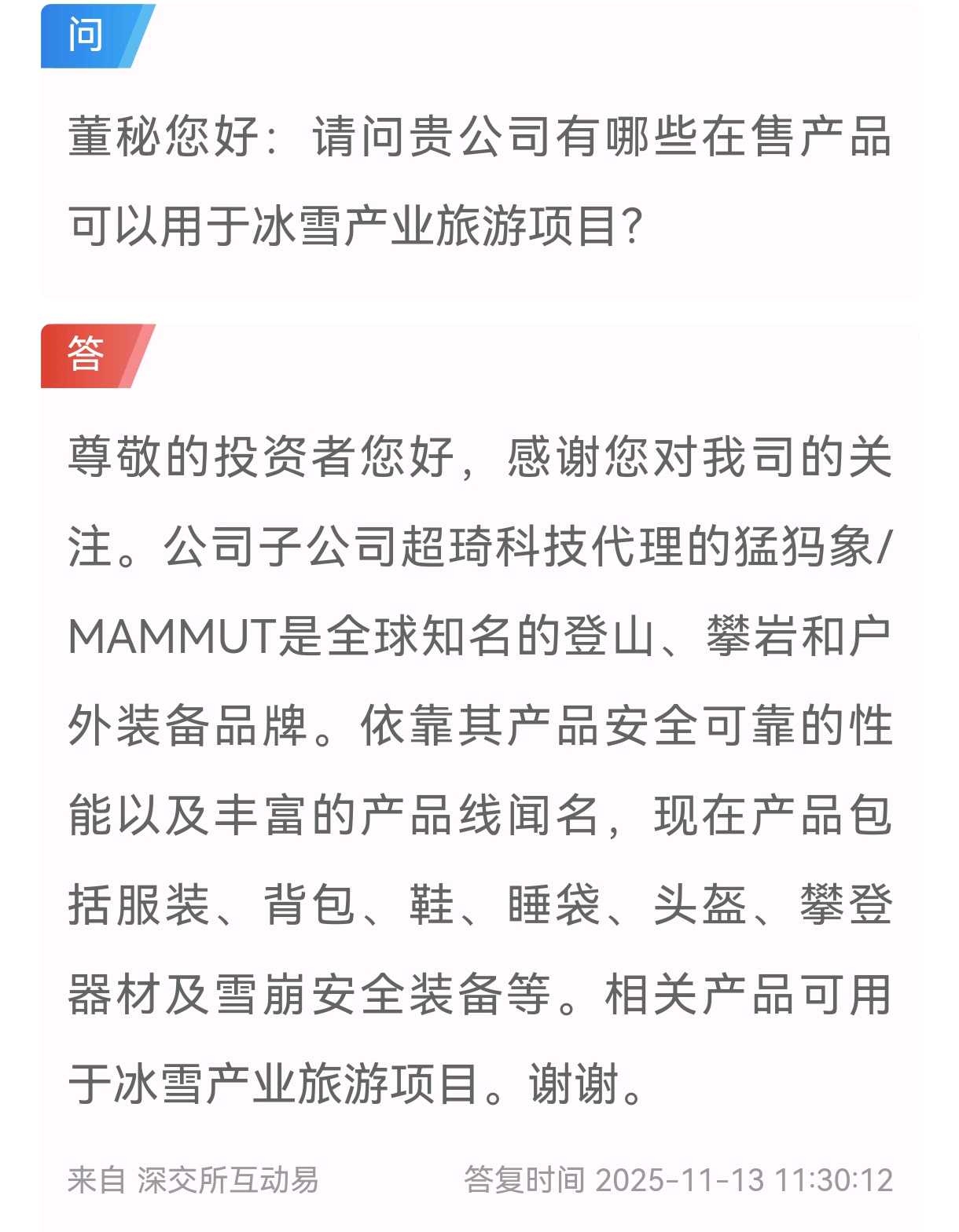 万里马,新增冰雪经济题材,代理的全球知名品牌猛犸象,产品安全可靠和产品线丰富而闻名,现在产品包括服装、背包、鞋、睡袋、头盔、攀登器材及雪崩安全装备等。相关产品可用于冰雪产业旅游项目。