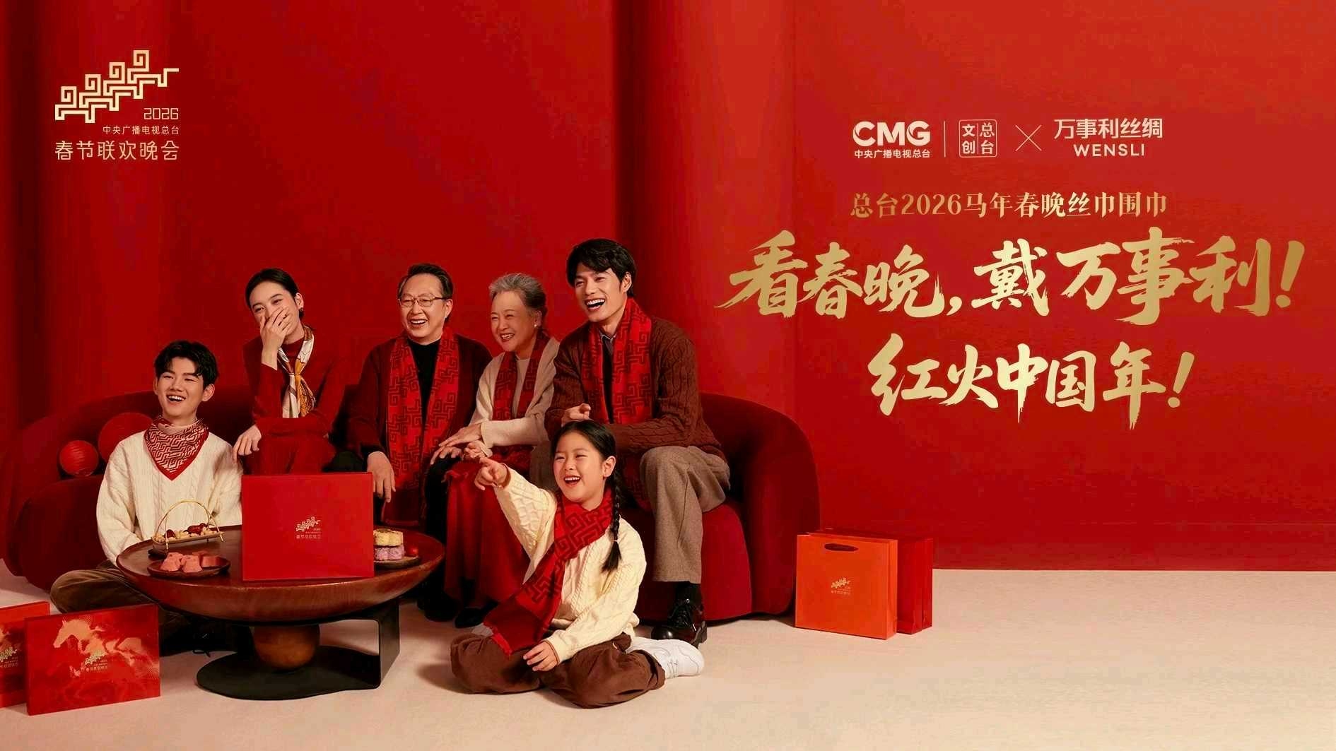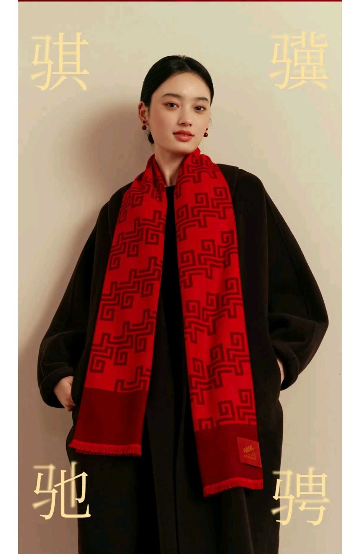 万事利与总台文创合作推出马年春晚联名围巾,以“骐骥驰骋纹”搭配传统云雷纹设计,贴合马年新春氛围,于昨日独家首发。