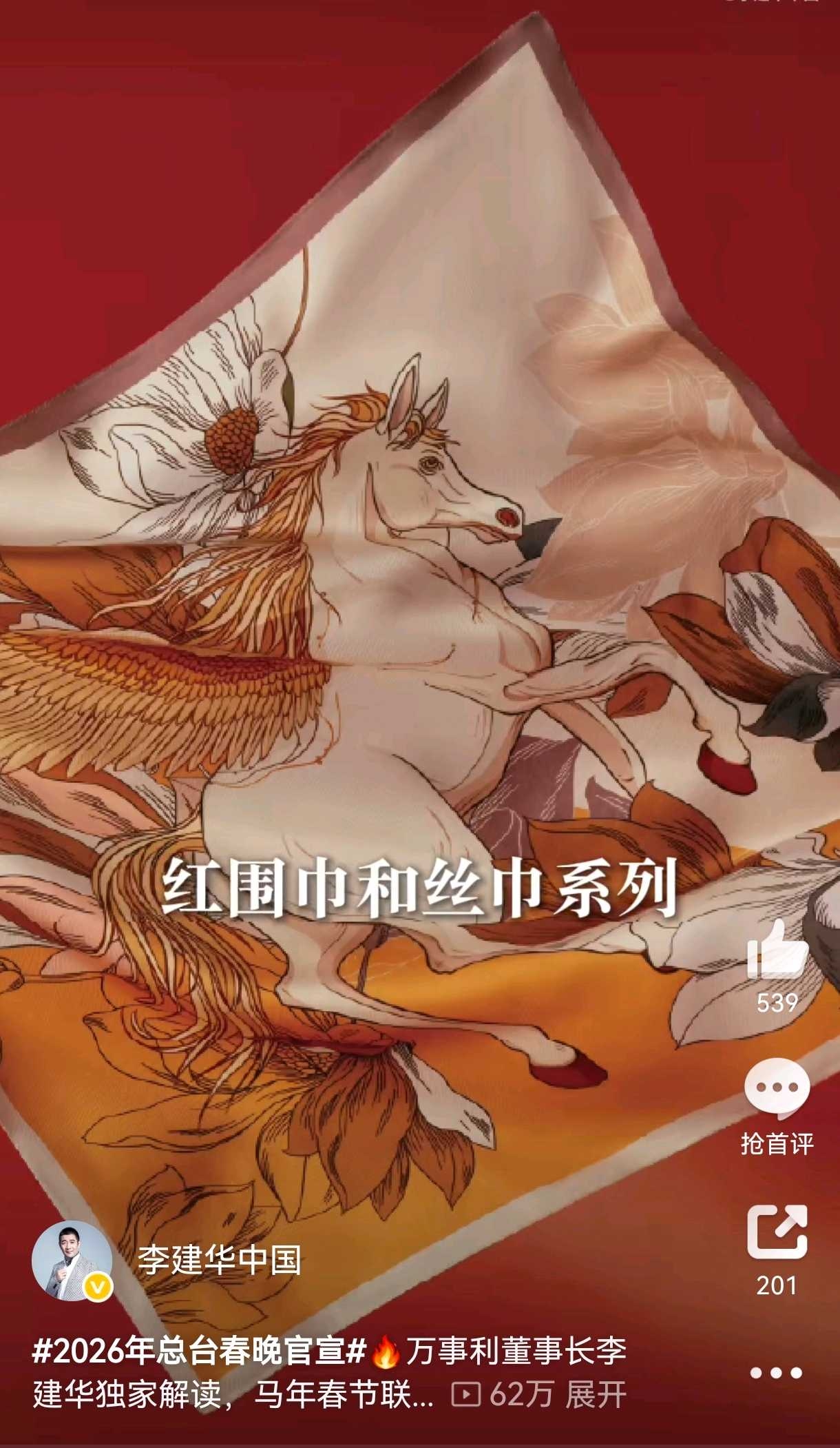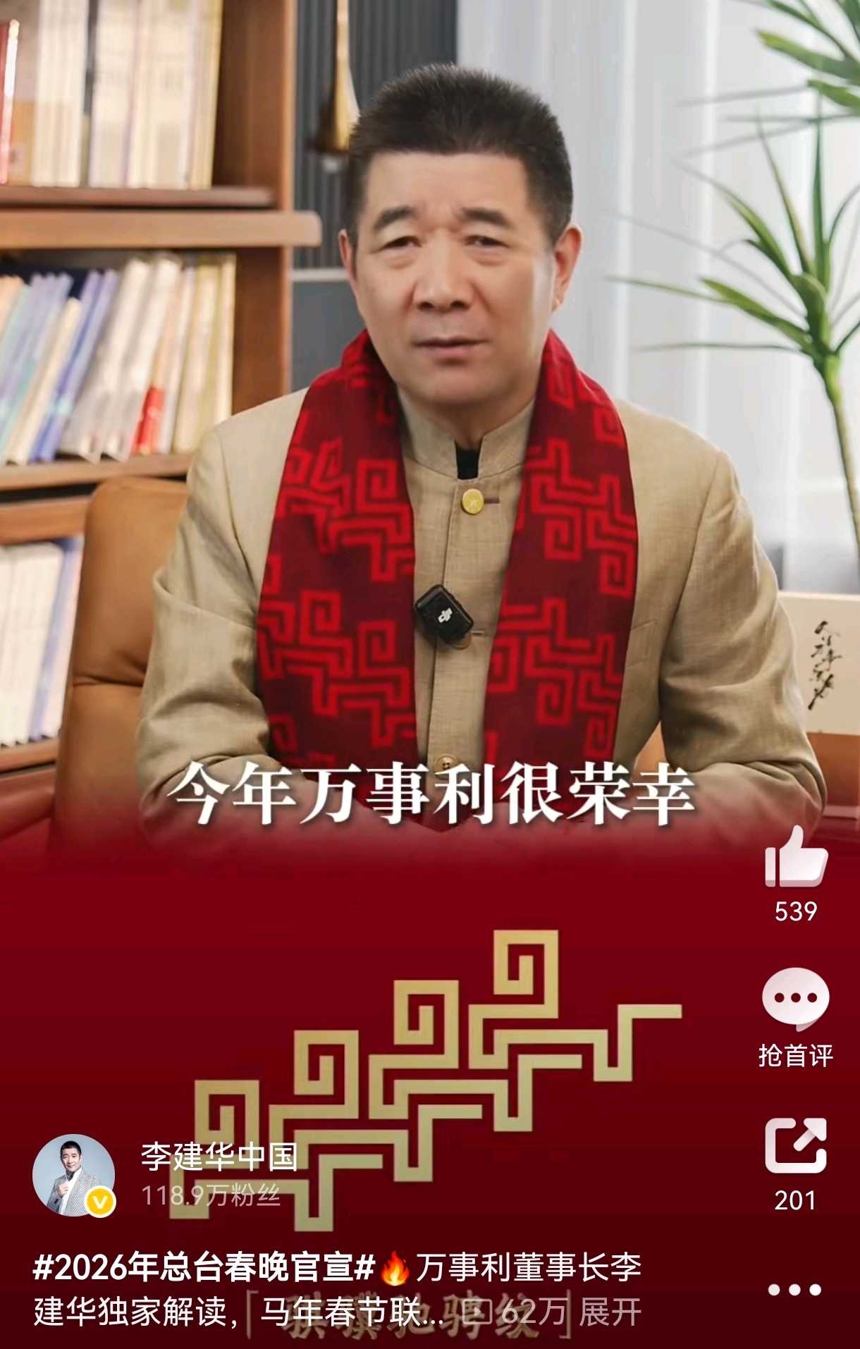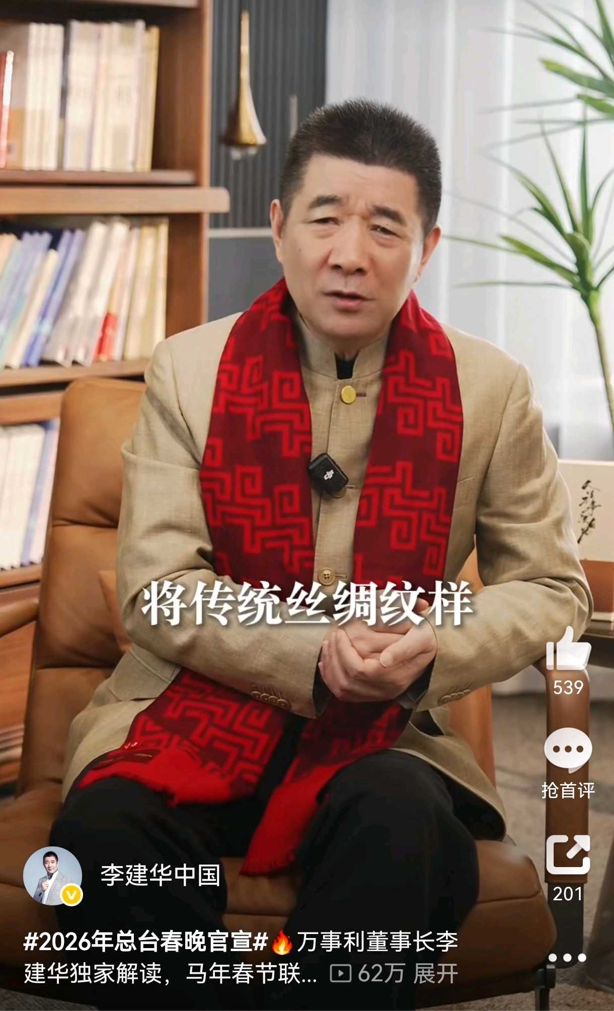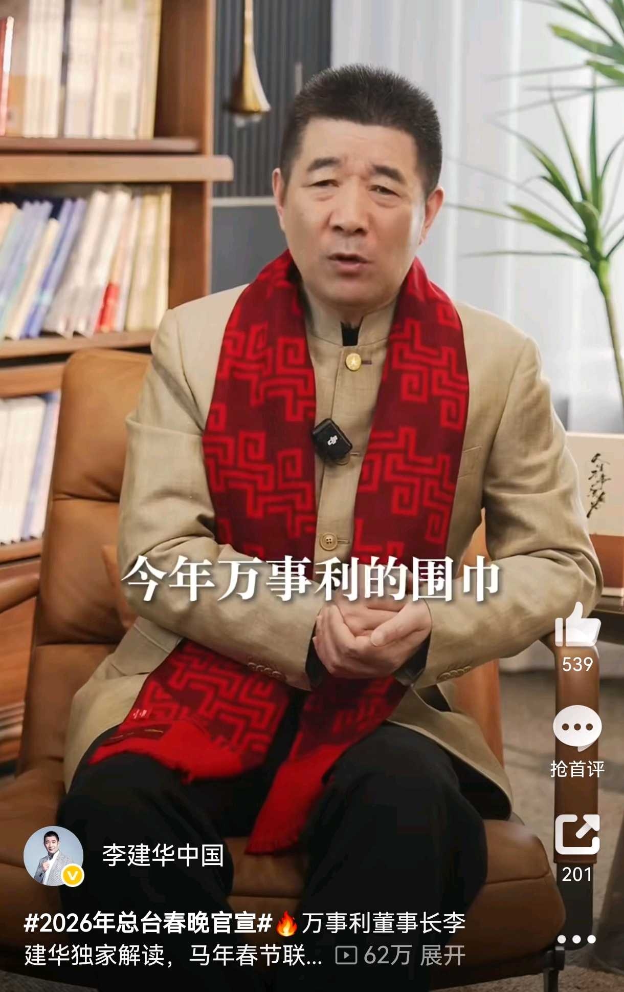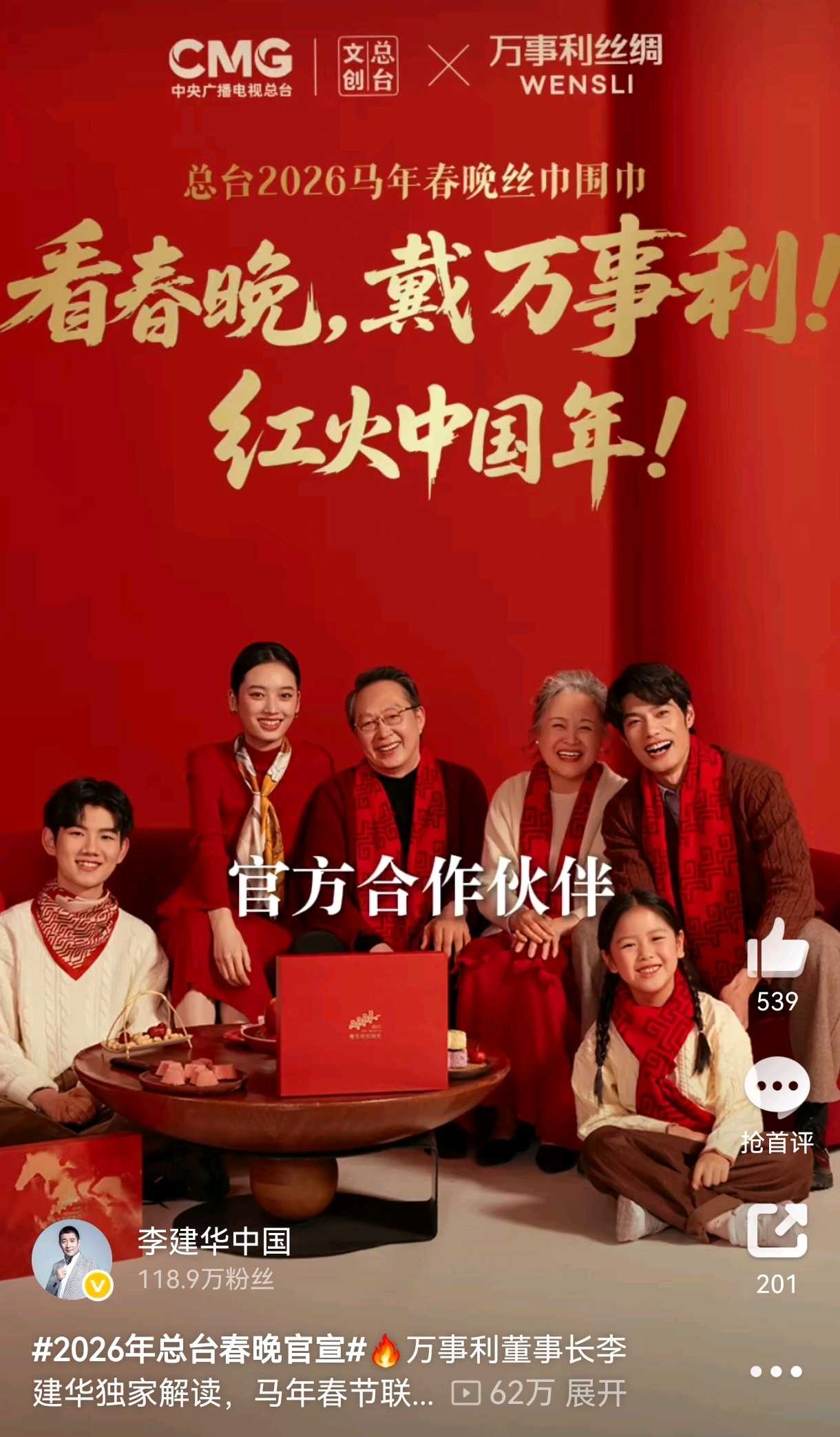 万事利(301066)董事长李建华发布视频,解读万事利与央视春晚的合作。