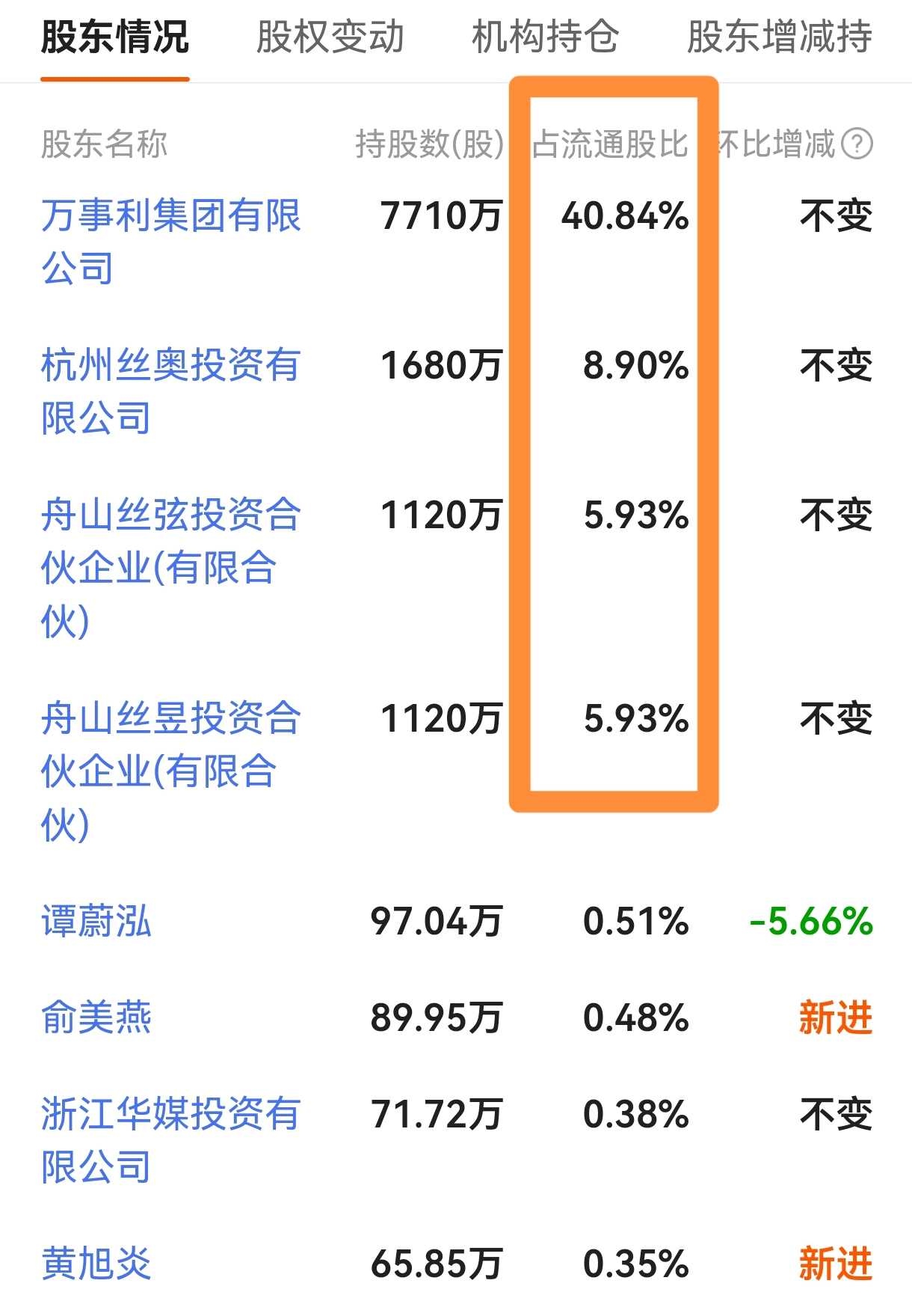 顺便提一句,万事利流股份里面,前四大股东合计持股61.6%,也就是说,实际的流通市值只有10亿元。