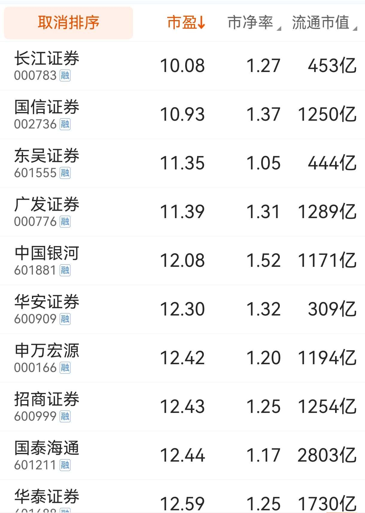 券商估值不高,市盈率快干到个位数了,会来一波行情了?
