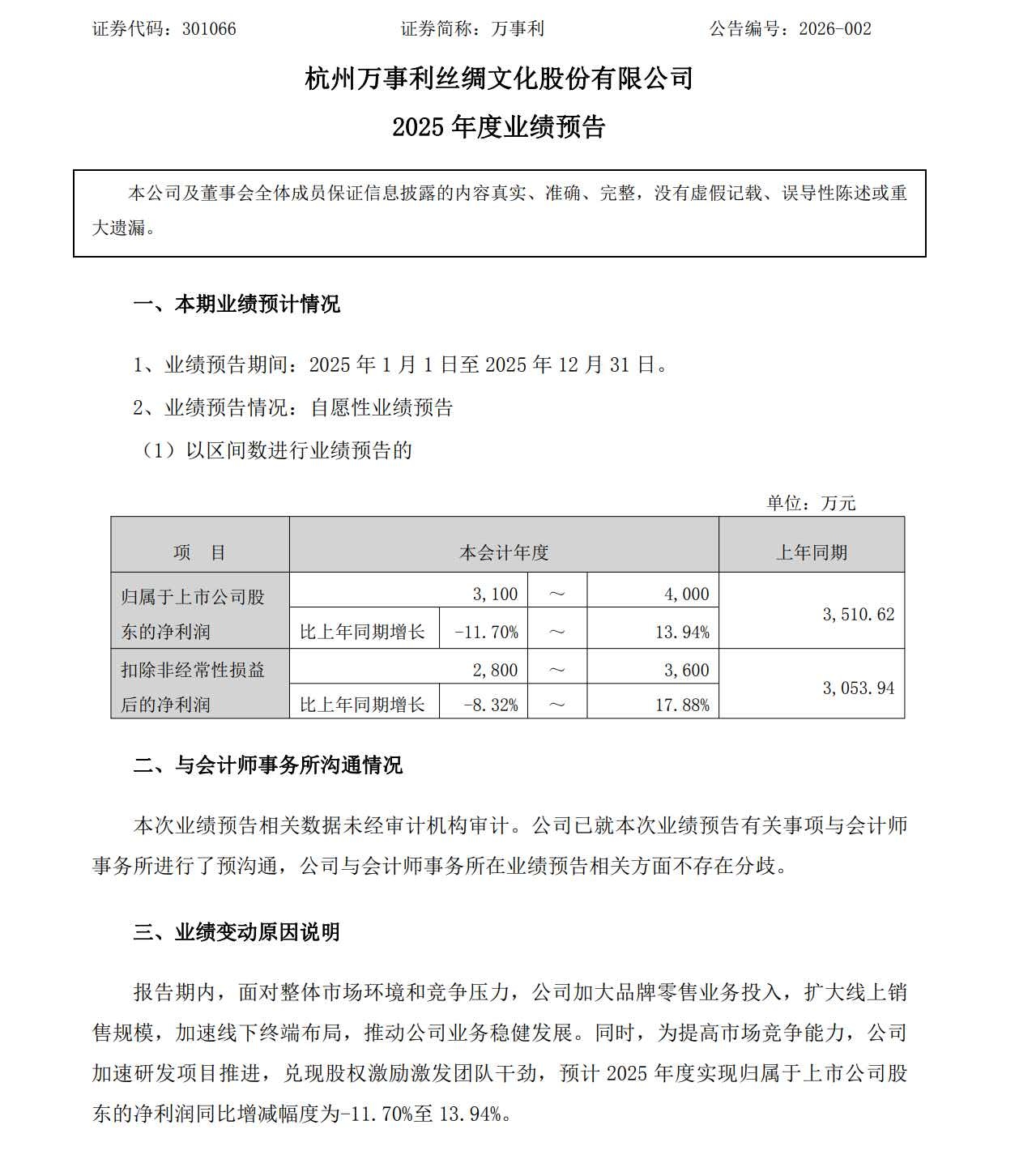 所以,我的结论,不吹不擂,万事利的业绩预告,为利好。