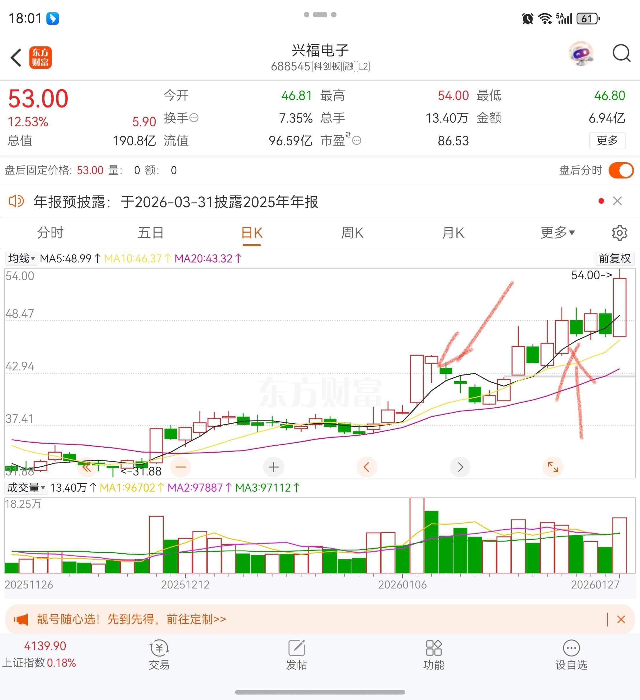 上图是兴福电子走势图,第一个剪头处是公告发布日,第二个剪头处,是解禁股上市流通日。