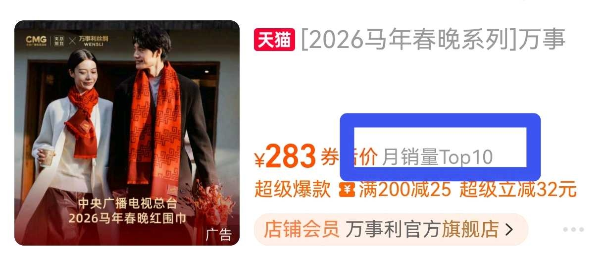 万事利(301066)出品的央视春晚联名文创围巾曝光度越来越高,带来的是品牌提升和产品销售增长。