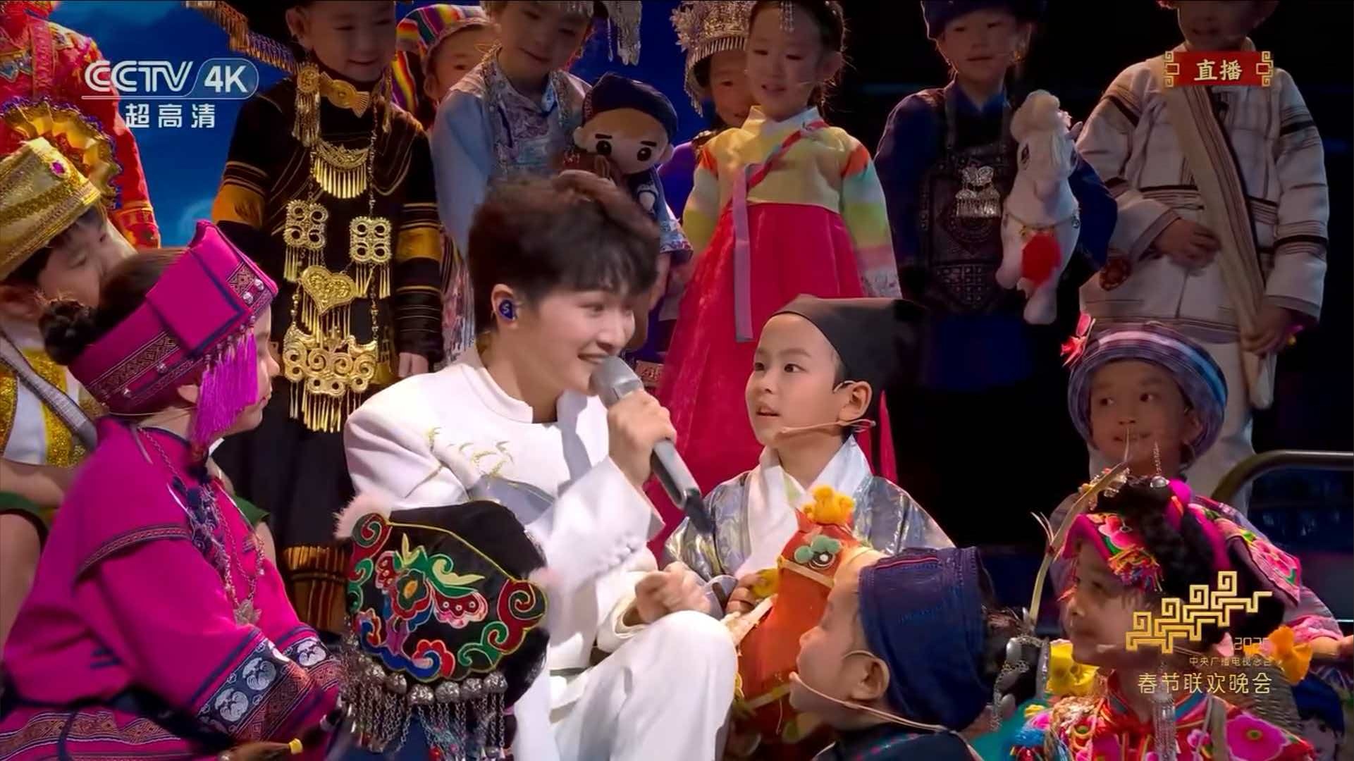 随后周深的节目,汉族小朋友在彩排之后,红马甲改成了明制汉服。终于,汉族小朋友,也穿上了民族服装。