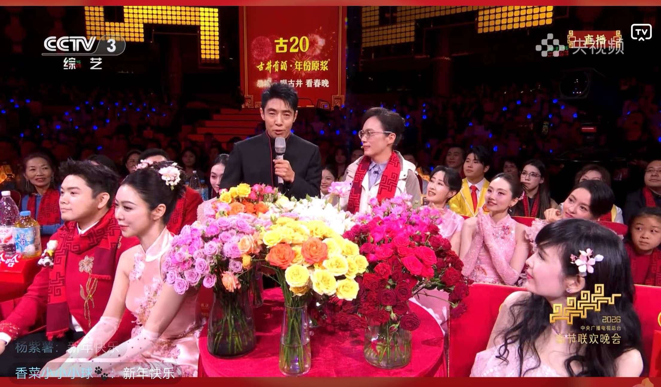 然后,不管是舞台上,还是舞台下,无处不在,N多次展示了万事利春晚联名红围巾。