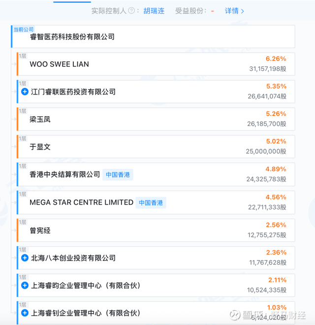 2025年5月,睿智医药公告披露,公司控股股东正式变更为胡瑞连。天眼查显示,截至2025年12月,胡瑞连仍为睿智医药实控人,直接持有 3115.7万股,占公司总股本6.26%。