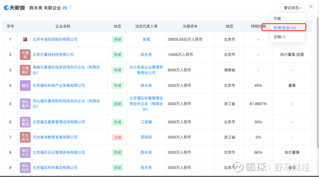 2012年开始,陈永亮便开始了资本布局,他先是担任浙江福特资管(后更名为:浙江云喜福起科技)总经理,并于同年开始担任该公司董事长。2019年11月至2021年7月,陈永亮担任杭州福石资产(下称:“福石资产”)总经理。