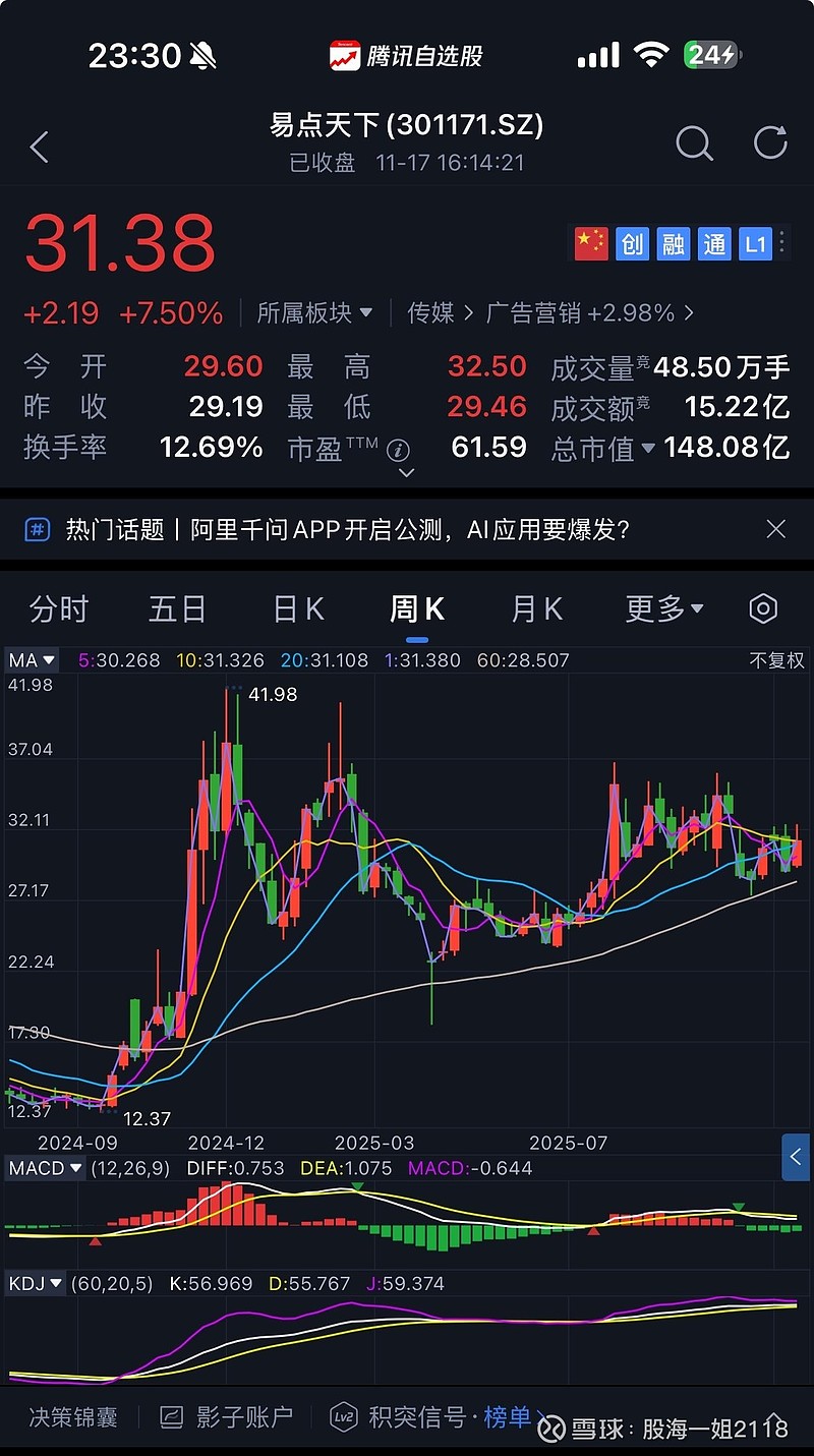 基于2025年最新市场数据,易点天下(301171)近期股价驱动逻辑呈现 "AI广告出海+游资机构共振+小红书概念催化" 的三重特征,核心催化剂围绕AI商业化进展和政策利好展开。具体分析如下: