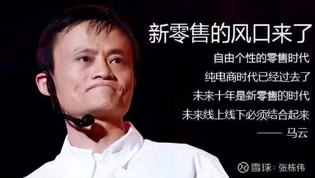 马云认为纯电商时代即将结束,新零售将引领线上、线下与物流的深度融合,新金融将更公平地支持中小企业,新技术和新资源(数据)将成为核心资源。