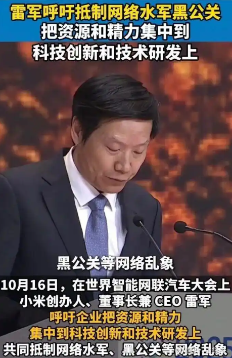 此前在9月25日采访中,雷军已表示小米汽车成为“全网被黑最惨的品牌之一”,并支持六部委打击黑水军行动。