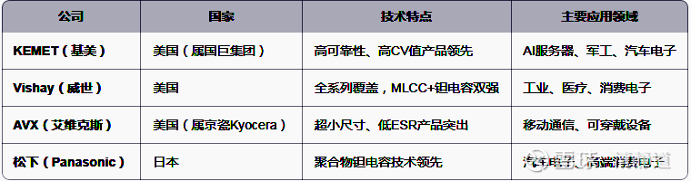 上述四家合计占据全球60%–70% 的高端钽电容市场;