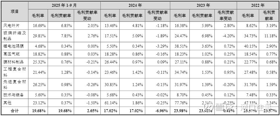 玻纤的毛利率相比2024年的17.51%增长了12个百分点,到了29.81%,主要的原因是玻纤的行业涨价和中材的电子布的逐渐放量。