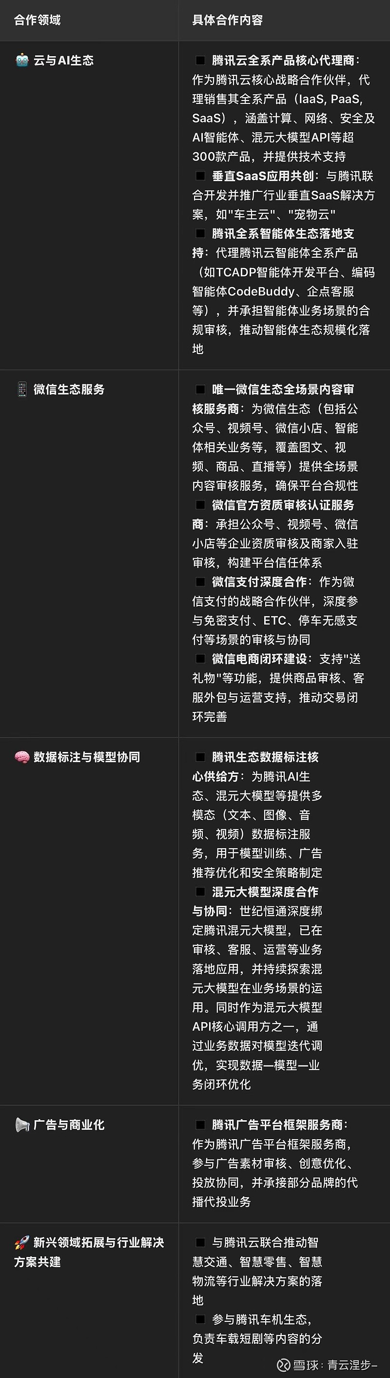 • 内容审核与客服受益:微信生态承接腾讯AI能力开放后的内容、交易、客服智能体等场景,内容与交易量同步指数级放大,世纪恒通的微信生态全场景内容审核业务、资质认证、客服外包等直接受益。
