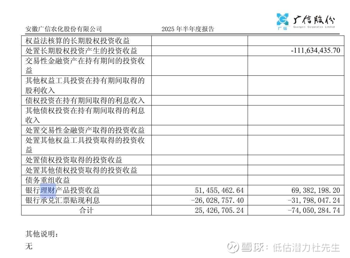 中报在手现金达到109亿,55亿定期将近19亿长期定期,25亿理财11亿现金,票据贴现达到33亿,理财产品收益率明显高于贴现利息。得益于二季度研发费用和管理费用减少7000万保证了二季度在营收下降情况下的利润水平没有下滑!说明公司加上了成本管控。差周期就比谁更能熬成本更低!静待周期反转$广信股份(SH603599)$查看图片