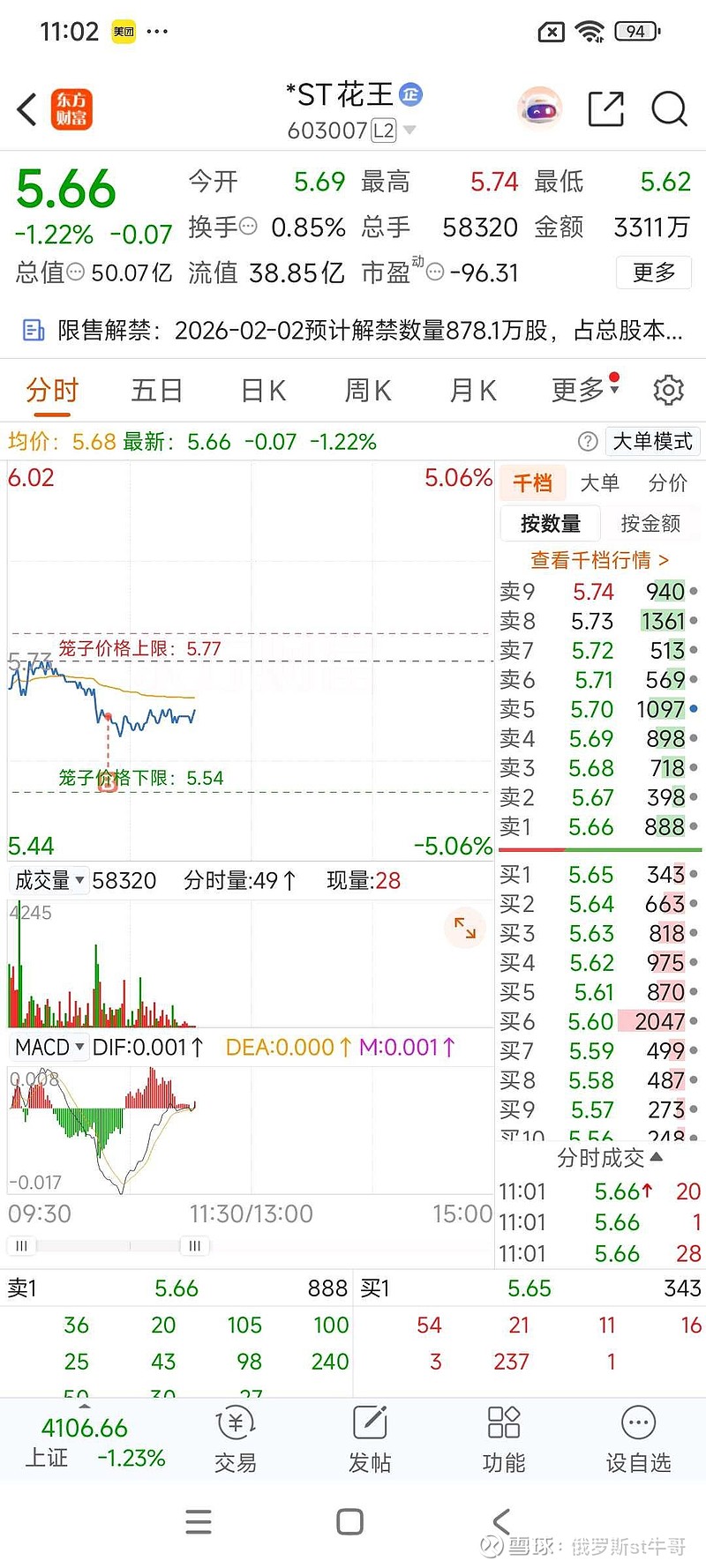$*ST花王(SH603007)$