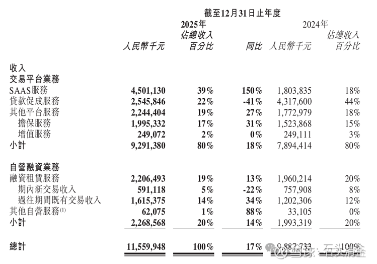 「纯技术」模式:为合作伙伴提供独立的支术解决方案,支持其自主发展汽车金融能力并承担相应的风险管理责任。2025年全年,该模式促成的融资总额达到人民币32亿元,同比增长74%。