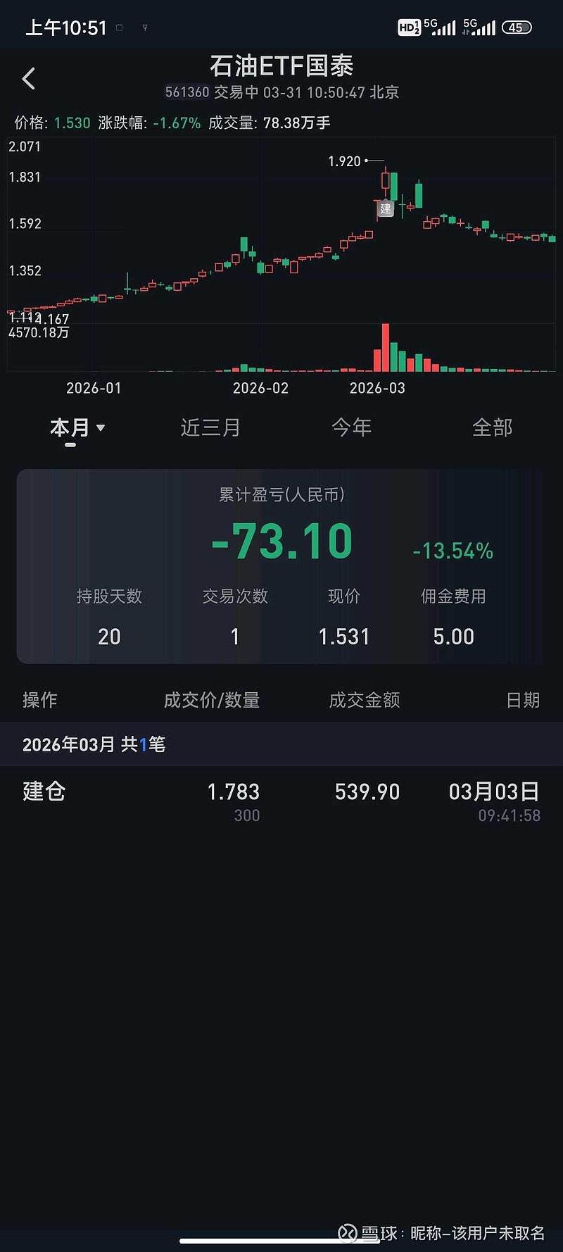 $石油ETF国泰(SH561360)$