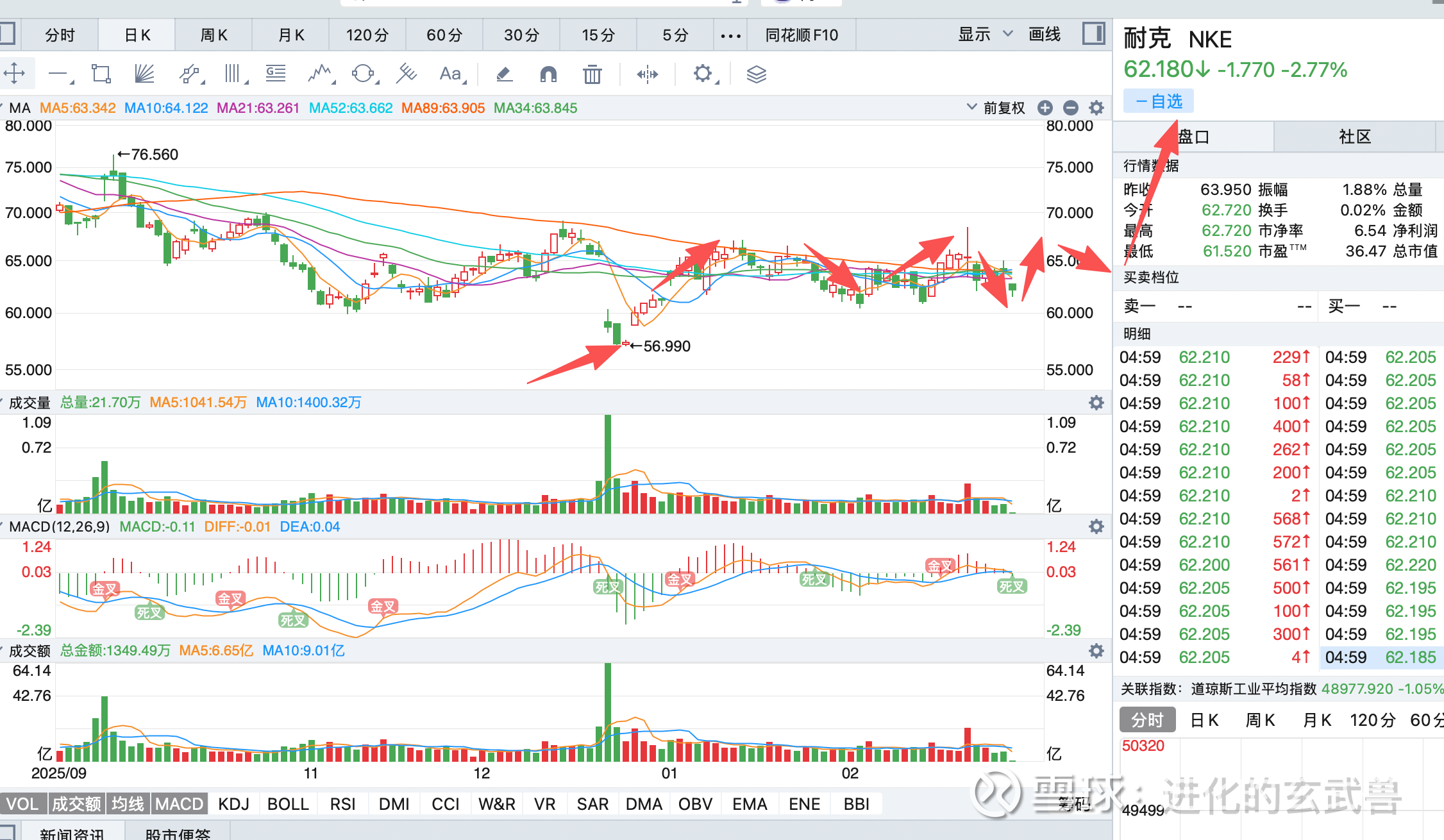 耐克:还在65左右剧烈震荡