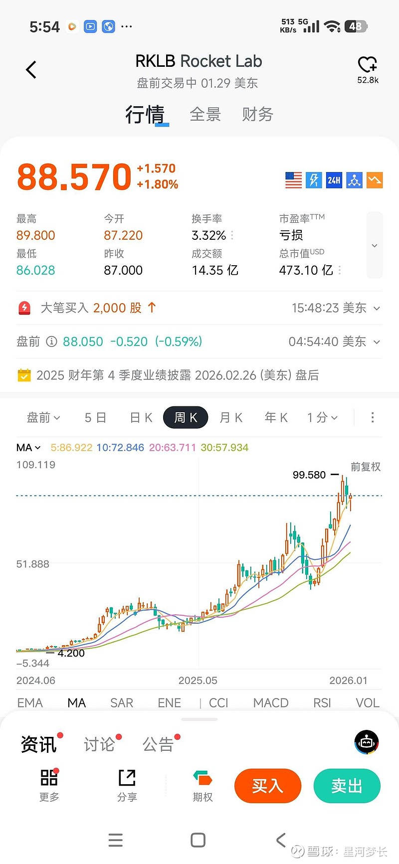 $回声星通信(SATS)$ $Rocket Lab(RKLB)$ 美股航天票一个2年28倍、一个14倍,但是rklb中间也经历过两波腰斩。他们的行情领先我们,等我们的可回收火箭成了,航天板块必然会出现10倍以上的票。至于谁是那个10倍股,走出来才知道,但信维肯定是有力竞争者