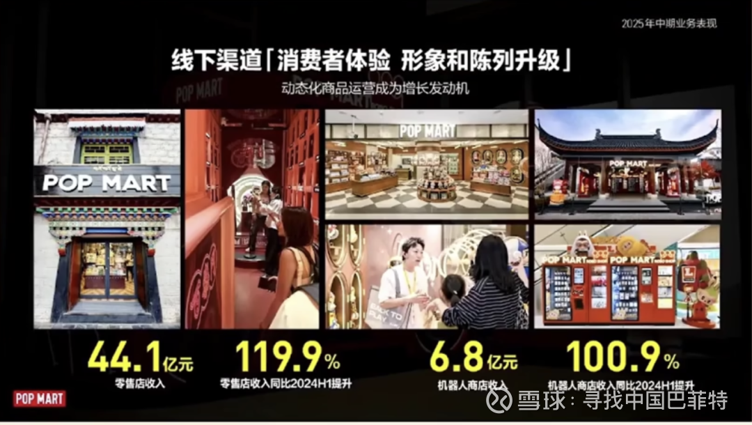 从二季度开始,Labubu在全球产生了非常高的热度,一方面得益于我们优秀的产品开发,另一方面是我们核心商业地产项目的门店,很大也很漂亮,而这些门店本身就是明星名人或者KOL们日常生活中会去的地方,他们在这里购物,我们的产品本身又有很强的社交属性,他们不断在社交媒体上晒出我们的产品,靠这种社交传播加速了整个业务的增长。