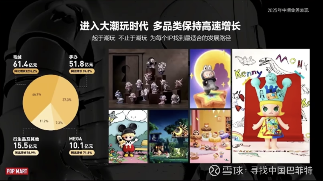 当然,值得我们欣喜的不只是业绩本身,还包括整个我们海外全球化的成功,以及我们很多IP平台更进一步的发展和健康化。大家熟知的Labubu,进一步地“扩圈”,成为世界级的IP。
