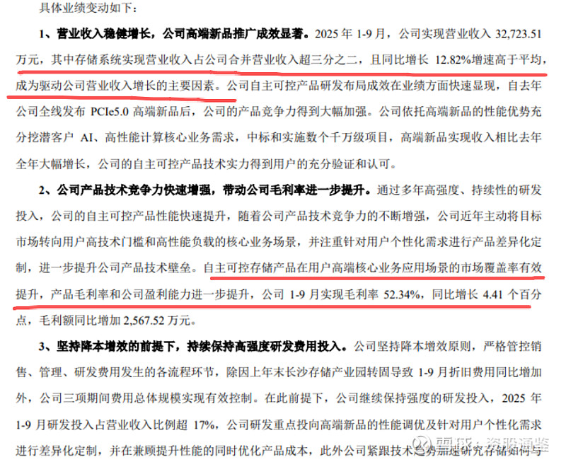 业绩变好原因,主要是“存储系统”放量导致营收增长,和毛利率提升。