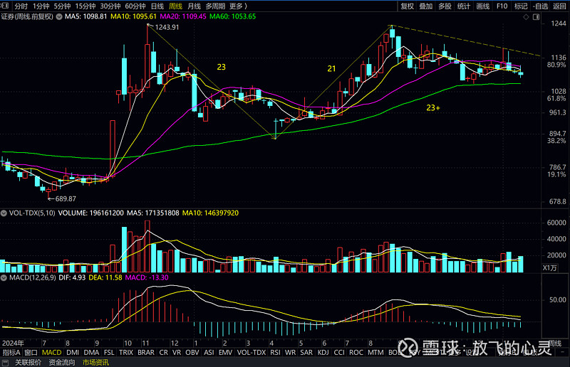 中信的图形跟证券板块指数差不多,所以也不过多分析了。我的观点就是技术上一个周线盘整形态即将结束,像中信这种24年前复权出现历史新高的,有机会走出周线的主升浪。也就是缠论a+A+b的b强势连接段。技术视角说完,聊点基本面视角的东西。