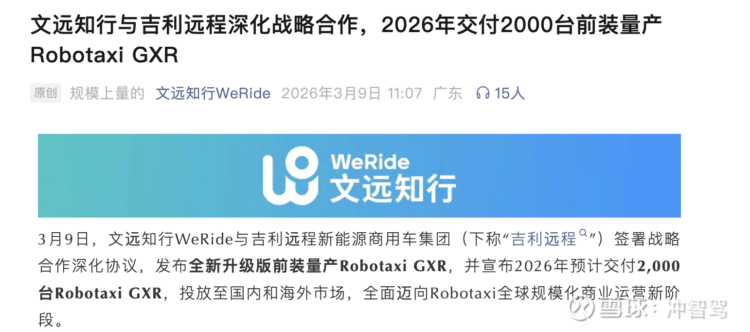文远知行今天发布全新升级版前装量产Robotaxi GXR,并表示今年就会交付2000台。