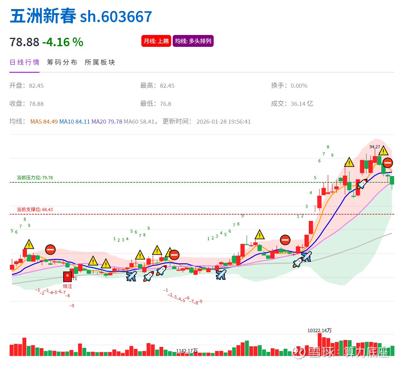 五洲新春的趋势指标也是健康的,走势和万向钱潮的基本类同,都是王者新高后的调整,五洲新春目前是比万向钱潮要稍微优秀一些的,市场给的预期弹性空间也会更大一些。明后天我们也是需要密切关注五洲新春的走势的。如果五洲新春在周四五企稳,下周应该会迎来全新的一个面貌了。$五洲新春(SH603667)$