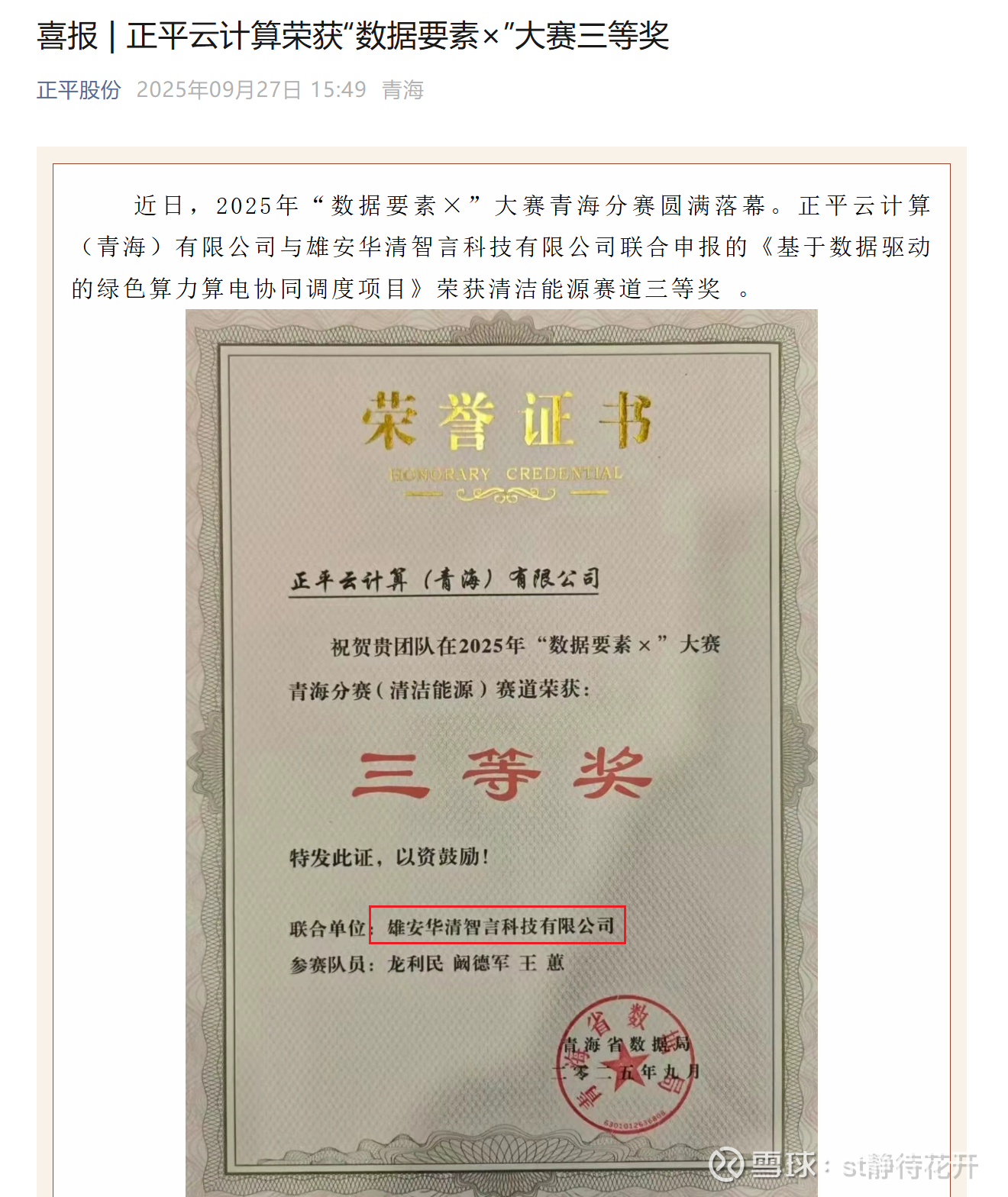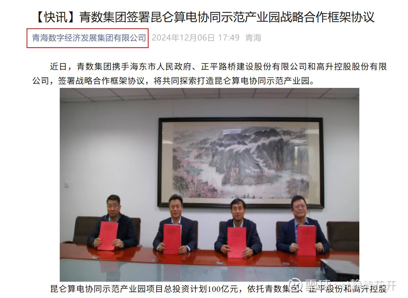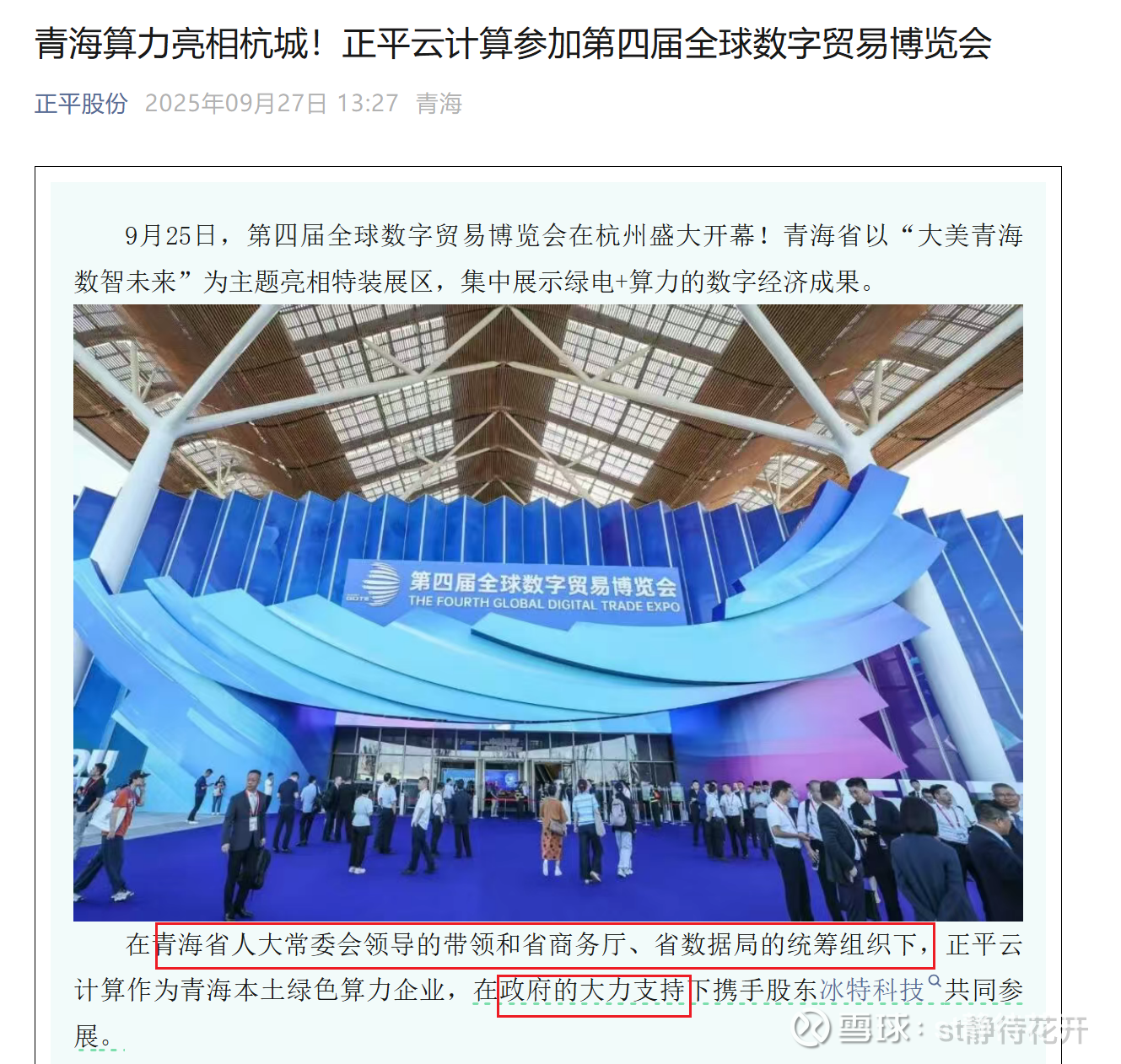 正平的昆仑算电协同产业园,就是与青海数字经济发展集团合作设立的!是青海省zf官方的算力平台,足以说明正平云计算本次参展,是青海省zf牵头的。既然有底气把正平的算力放在台面上展览,也说明zf官方已经充分认可正平的算力了!!