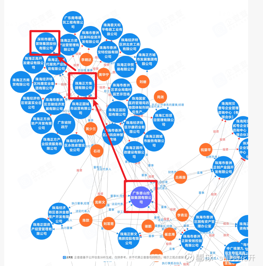 另外,仔细看了下香山控股集团的穿透图谱,建艺是平台下唯一一家控股上市公司!!