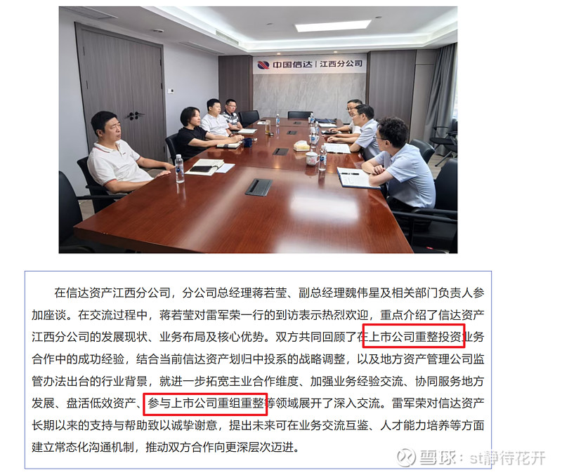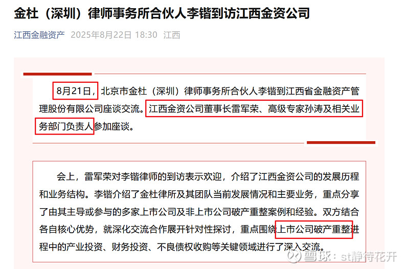 恰巧在同一天,完全相同的一波人,先后前往中国长城资管江西分公司和中国信达江西分公司,交流的核心内容,也恰巧是上市公司破产重整!