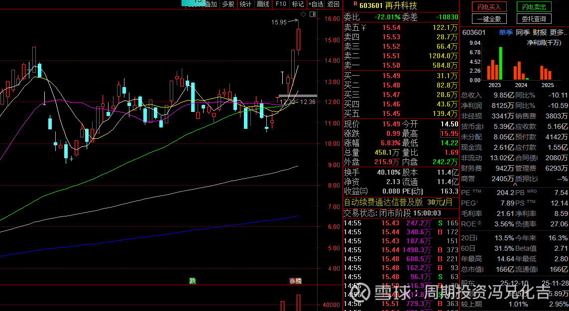2025年前三季度,再升科技呈现“短期业绩微调、现金流大幅改善、财务结构极致优化”的特征,充分体现其抗风险能力与稳健经营理念,核心财务数据依托2025年三季报精准呈现,数据详实可追溯: