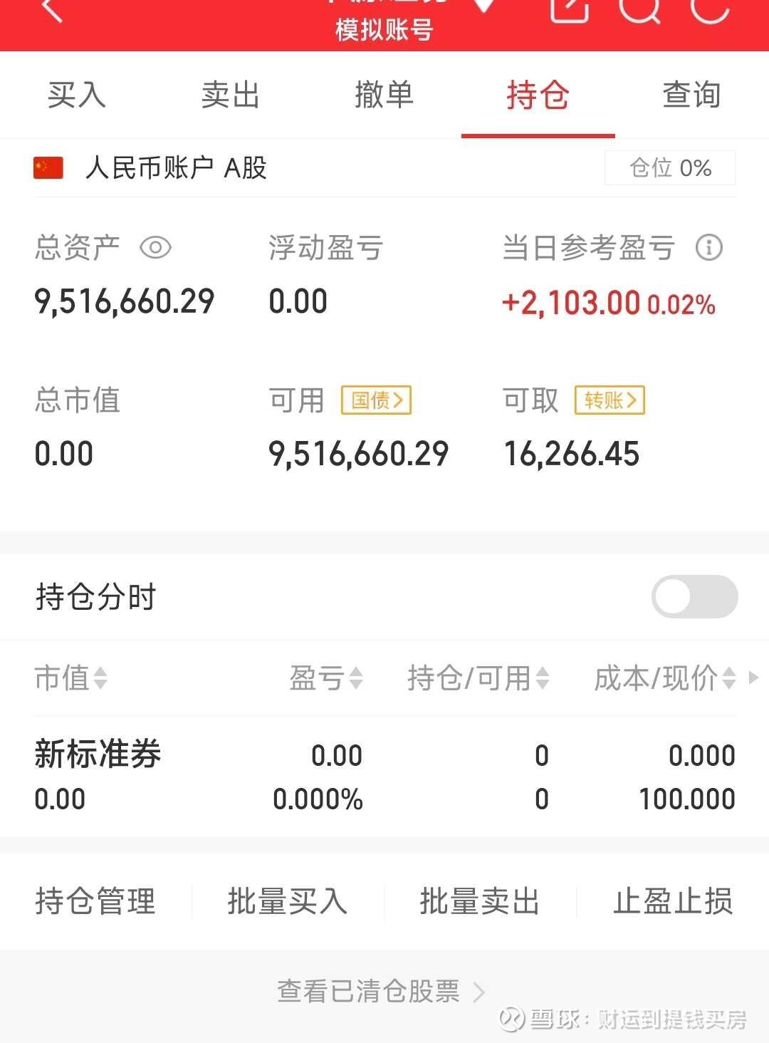 1、开了个新的实盘模拟账号,每天更新,实盘能坚持到哪一天我也不确定。