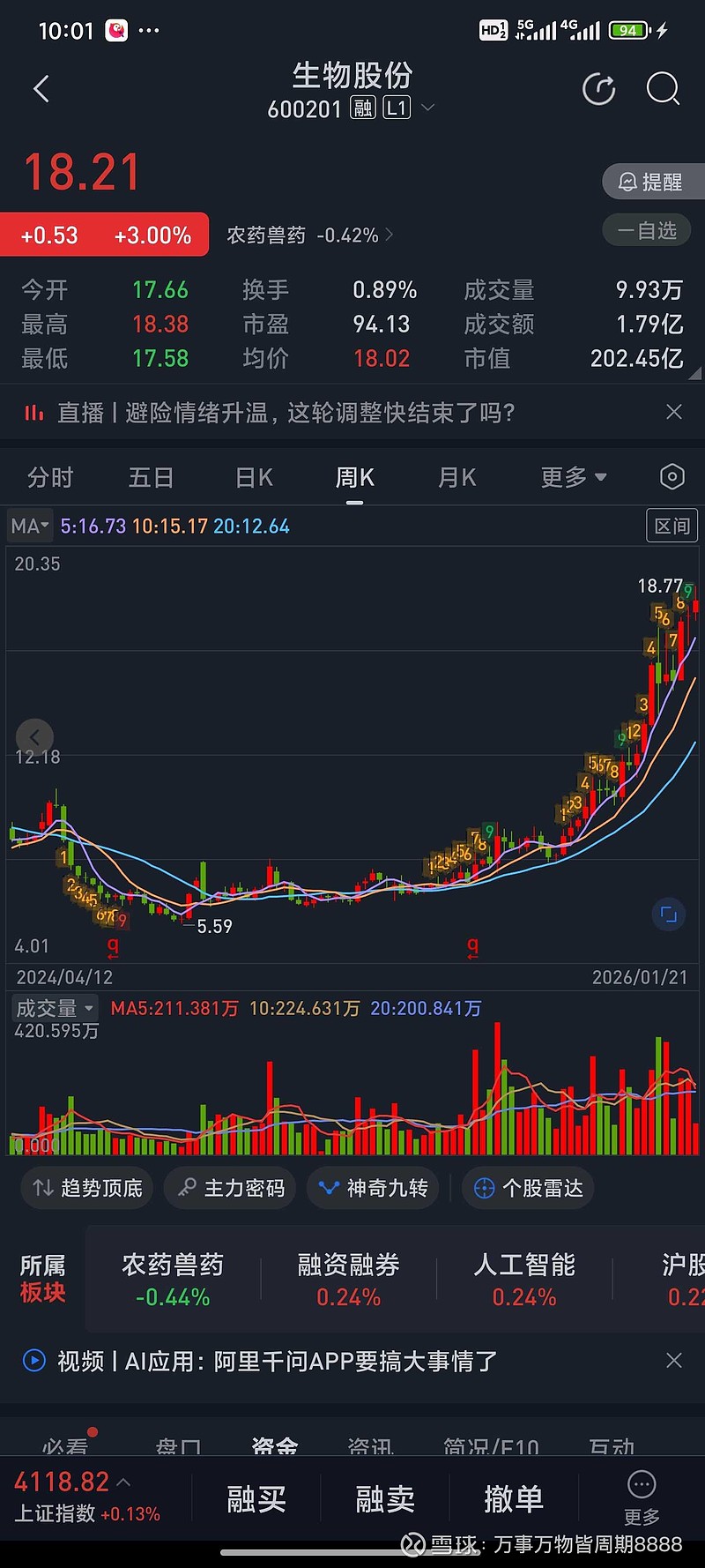 $康希诺(SH688185)$太讽刺了,生物股份也是做疫苗。他只是做动物疫苗。股价上涨很坚挺。也是从亏损到反转。从底部算已经快三倍了。人的消费能力还不如一头猪,一条狗呢。哈哈!!它也有MRNA技术平台,为啥康康没大资金看得上,啥原因呢?归根原因,康还是没盈利能力,至少目前还没有!