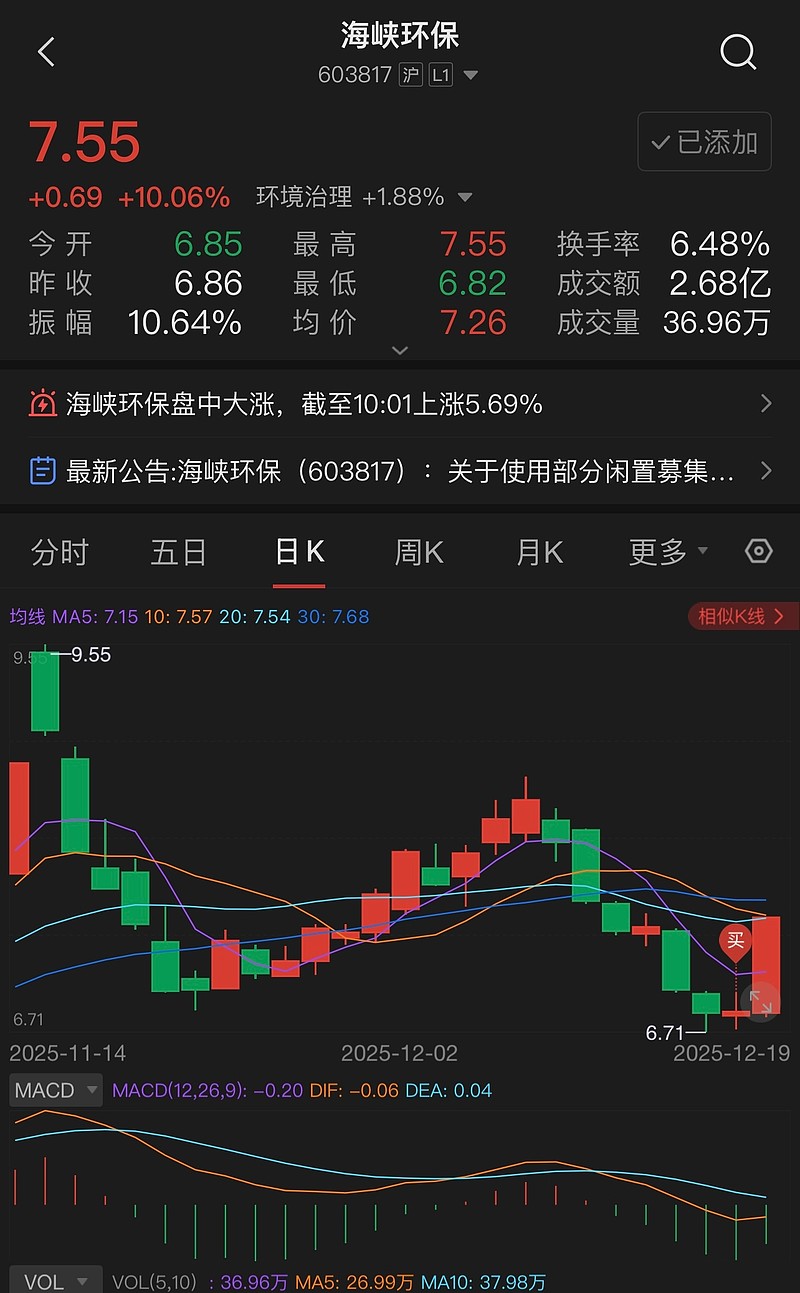 海峡环保,买的不多也是肉,福建板块还是活跃!