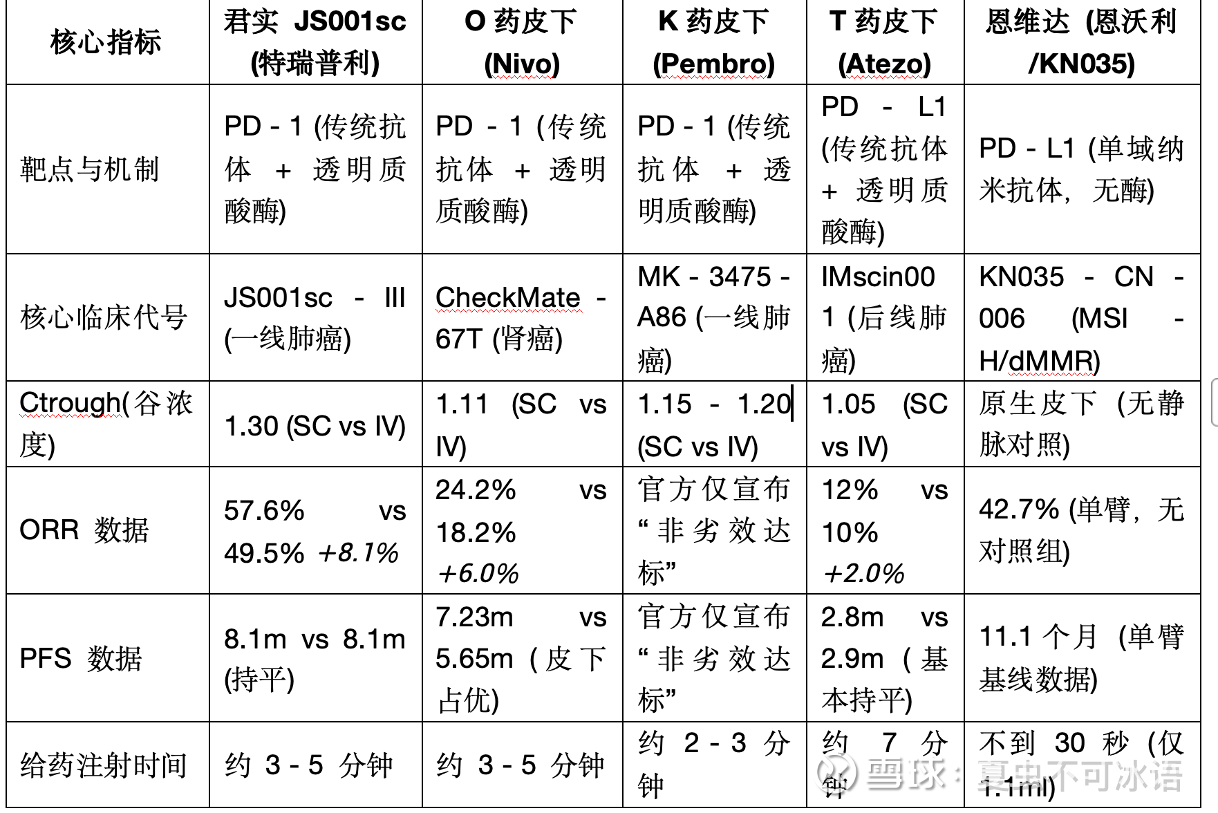 恩维达(恩沃利单抗)— 不在同一个考场 * 置信区间数据:无。 * 临床大白话解读: 因为恩维达是全球唯一的原生皮下制剂,它从来就没有静脉打点滴的版本。没有静脉版,就没有对照组。不过到现在都没有IV版的,以后估计也不会上了。
