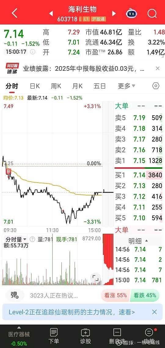 $海利生物(SH603718)$