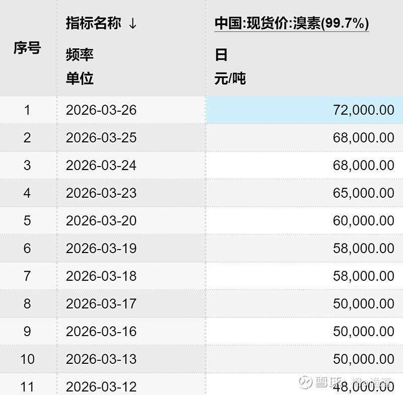 今日溴素价格再创新高,7.2万元/吨!
