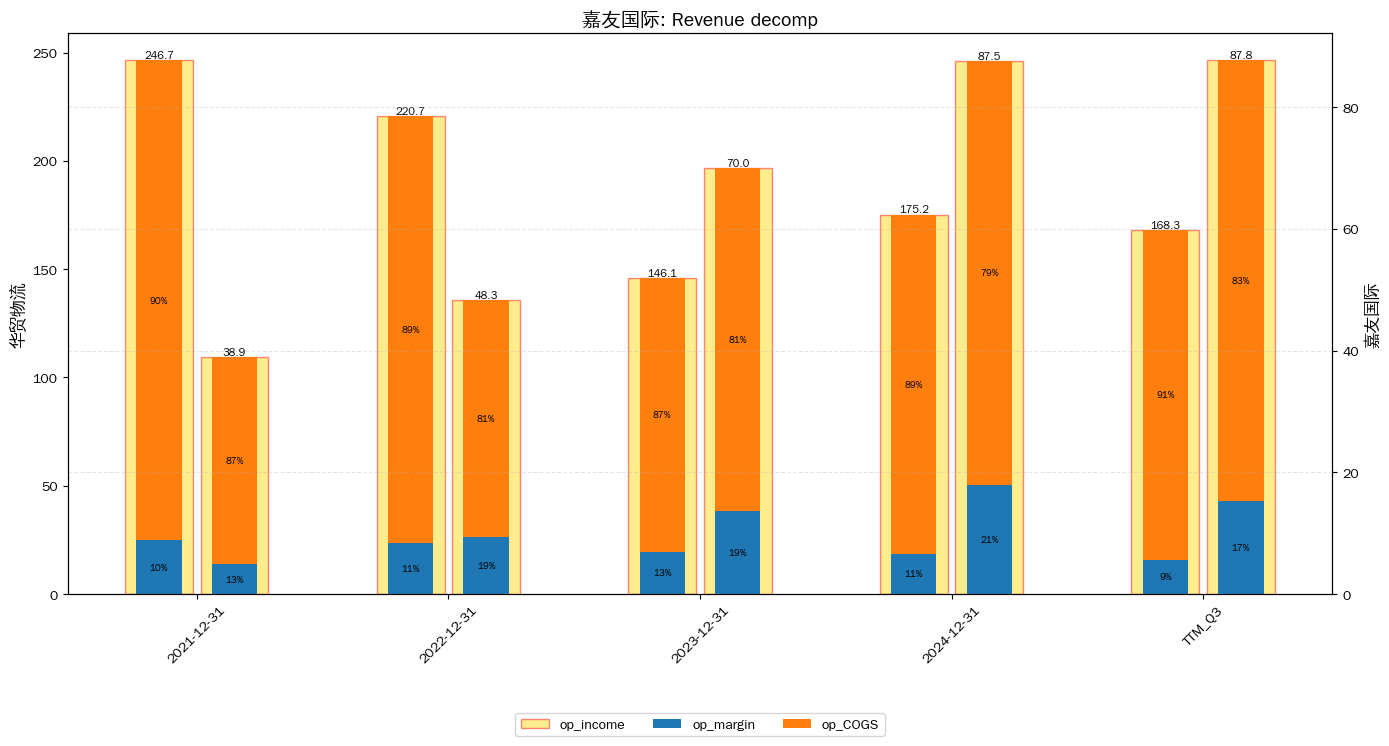 op income:营业收入;COGS:营业成本;margin:毛利(百分比为毛利率)
