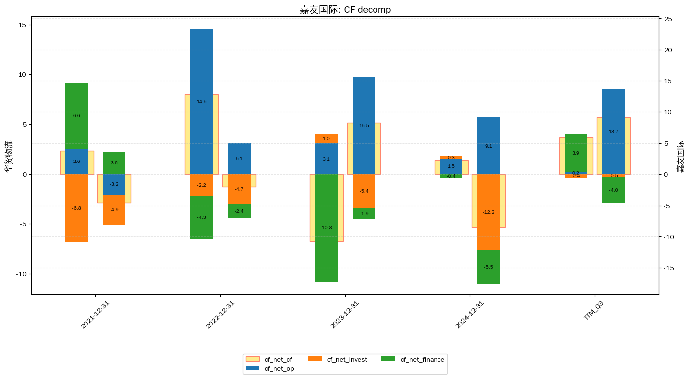 * cf_net_cf: 净运营+净投资+净筹资;* cf_net_op: 净运营;* cf_net_invest: 净投资; cf_net_finance: 净筹资
