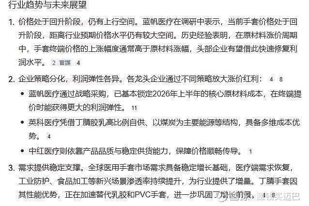 $中红医疗(SZ300981)$ 当前手套价格处于回升阶段,距离行业预期价格水平仍有较大空间。历史经验表明,在原材料涨价周期中,手套终端价格的上涨幅度通常高于原材料涨幅,头部企业有望借此快速修复利润水平。