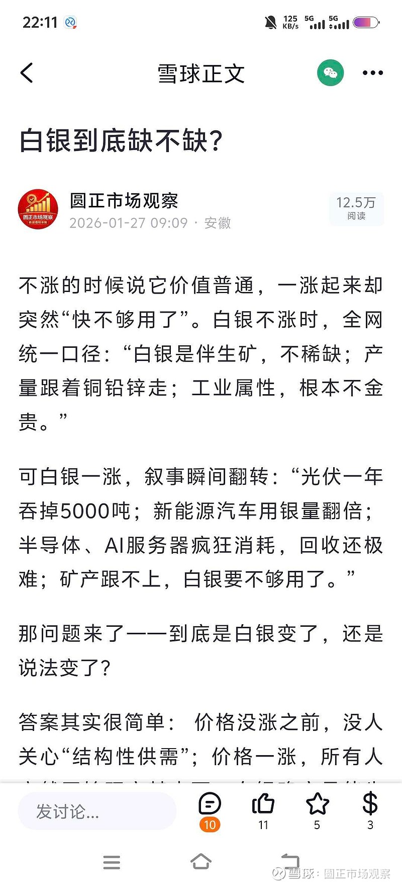 你回头看,会发现一件很有意思的事:白银不涨的时候,全网统一口径“伴生矿、不稀缺、工业属性强、不具备货币属性。”可一旦价格上涨,叙事立刻反转。光伏、新能源车、半导体、AI服务器……所有故事一夜之间全部被放大,最后得出一个结论“白银要不够用了。”